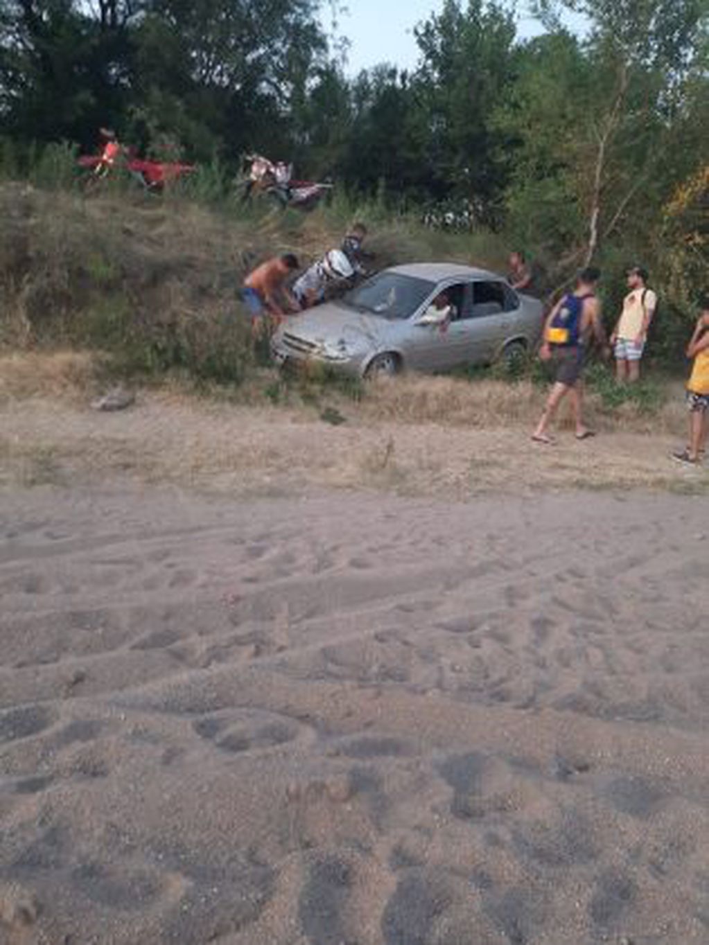 Pare retirar el vehículo, el hombre debió pedir ayuda a otras personas que allí se encontraban, ya que quedó en una zona donde el terreno hace una depresión y terminó incrustado entre ramas y malezas.