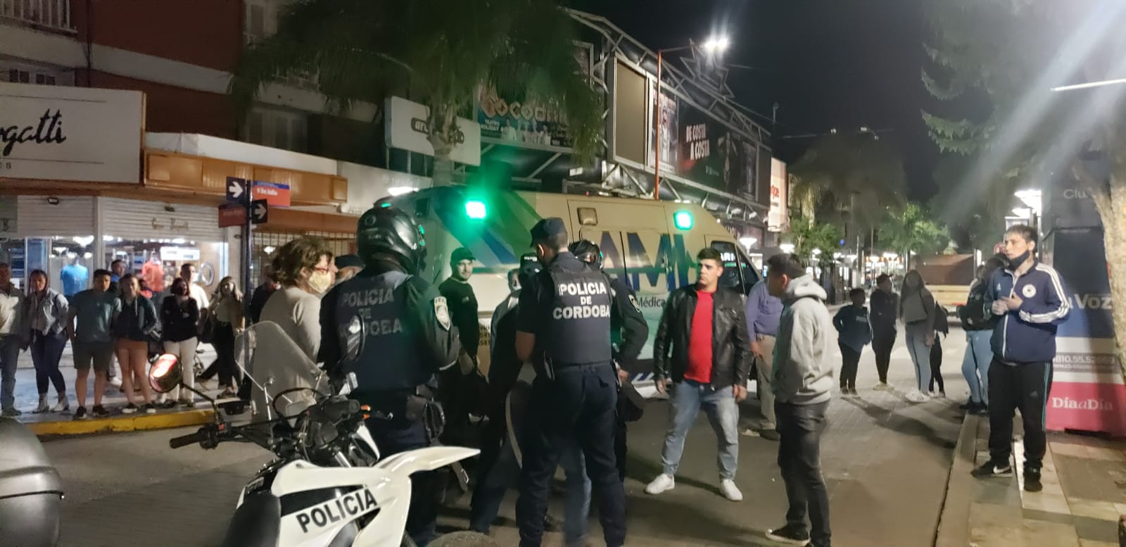 Era un joven que en una primera instancia insultaba a la gente que caminaba en pleno centro de Carlos Paz. Llegó la ambulancia, bomberos y la Policía. Fue detenido.