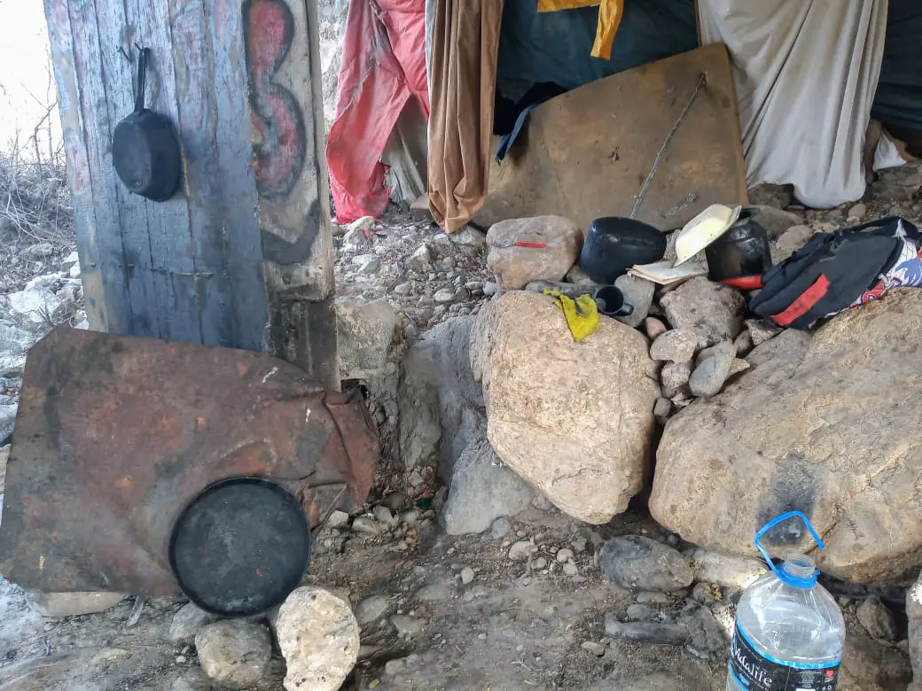 “Tengo mi colchón, mis colchas, una carpa que me trajo una señora. Para cocinar, tengo una olla y prendo fuego, así me hago la comida y también caliento agua. Lo único que se me complica cuando llueve porque se moja todo, por eso necesitaría un anafe. Además, tengo una bajada de electricidad”, detalló Omar.