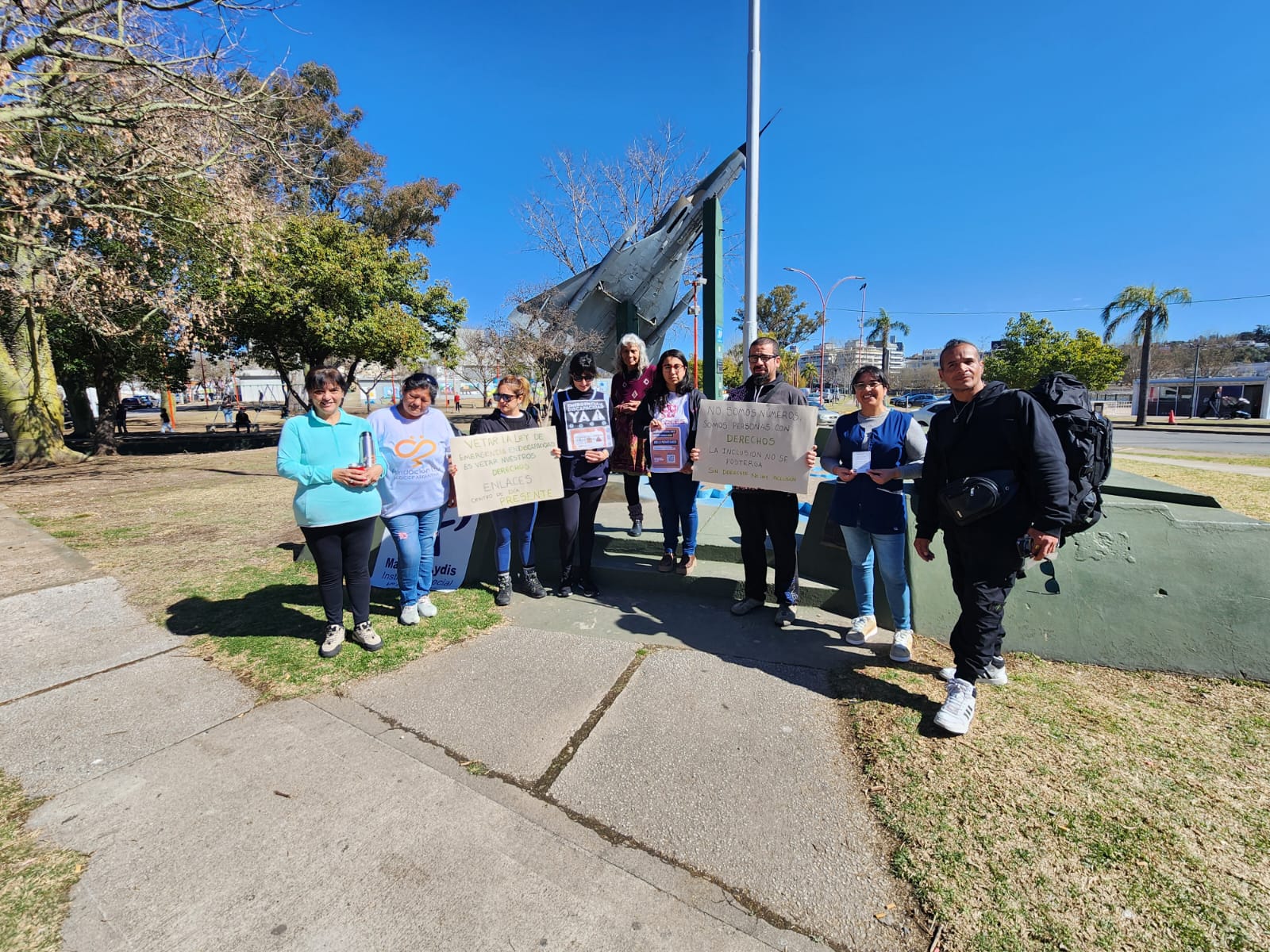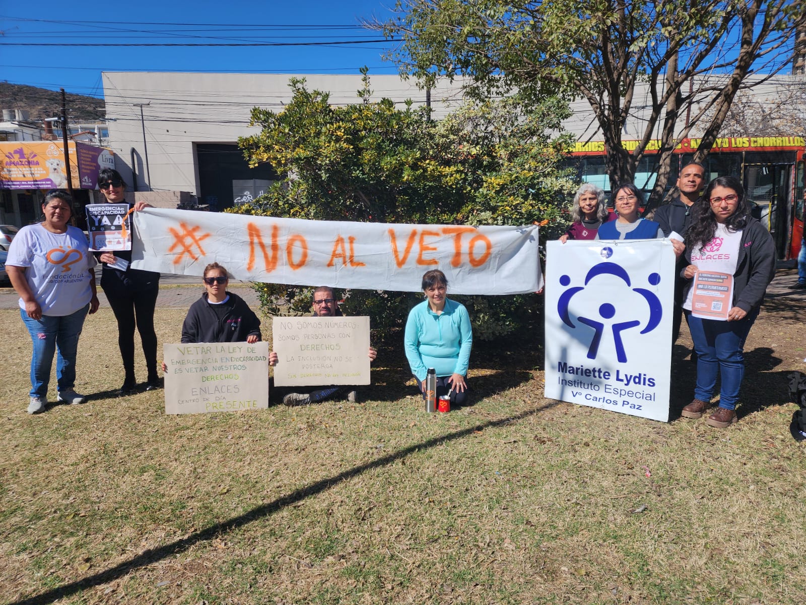 En sintonía con las manifestaciones que se replicaron en todo el país, docentes y padres de alumnos de la escuela especial Mariette Lydis y de la Fundación Luz realizaron este miércoles una jornada de visibilización en la plaza del avión de Villa Carlos Paz para expresar su rechazo al veto presidencial a la Ley de Emergencia en Discapacidad.