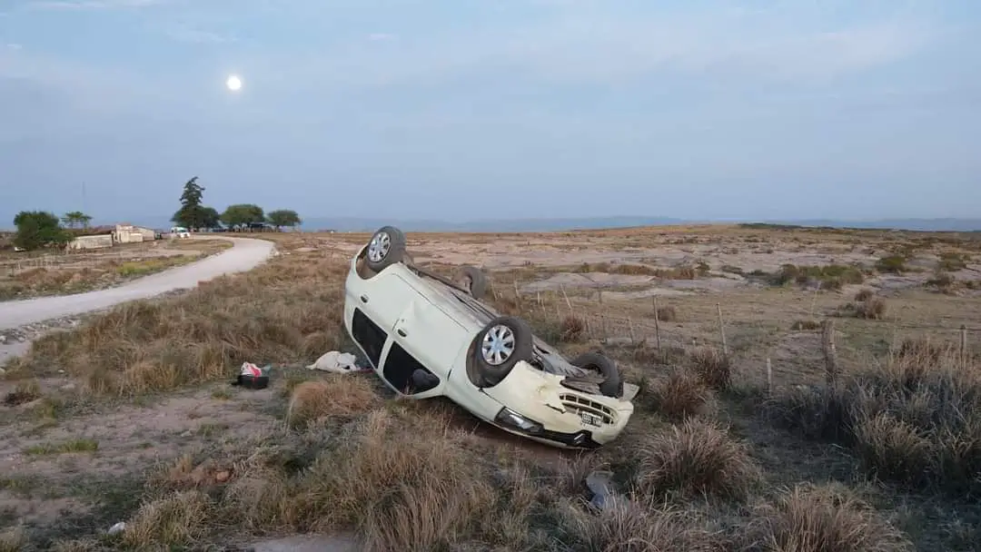 El hecho ocurrió minutos después de las 19 horas y fue protagonizado por un Renault Clio conducido por un hombre de 65 años, que era acompañado por una mujer de 59 años. Allí, por motivos que intentan esclarecerse, el hombre perdió el control del rodado, se despistó del camino de tierra y, tras dar varios vuelcos, quedó dado vuelta sobre un campo a orillas del camino.