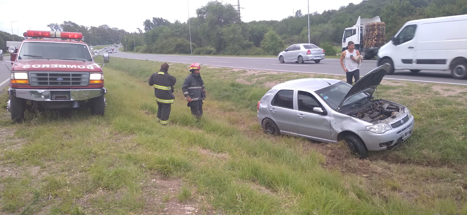 Allí, un Fiat Palio gris conducido por un hombre, por motivos que se investigan perdió el control y comenzó a volcar, terminando sobre el cantero central de la autopista.