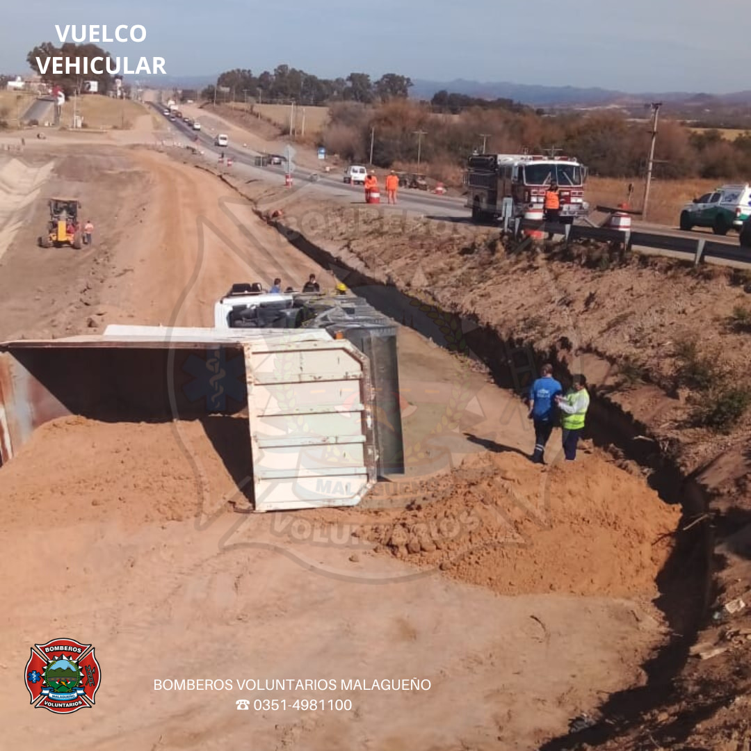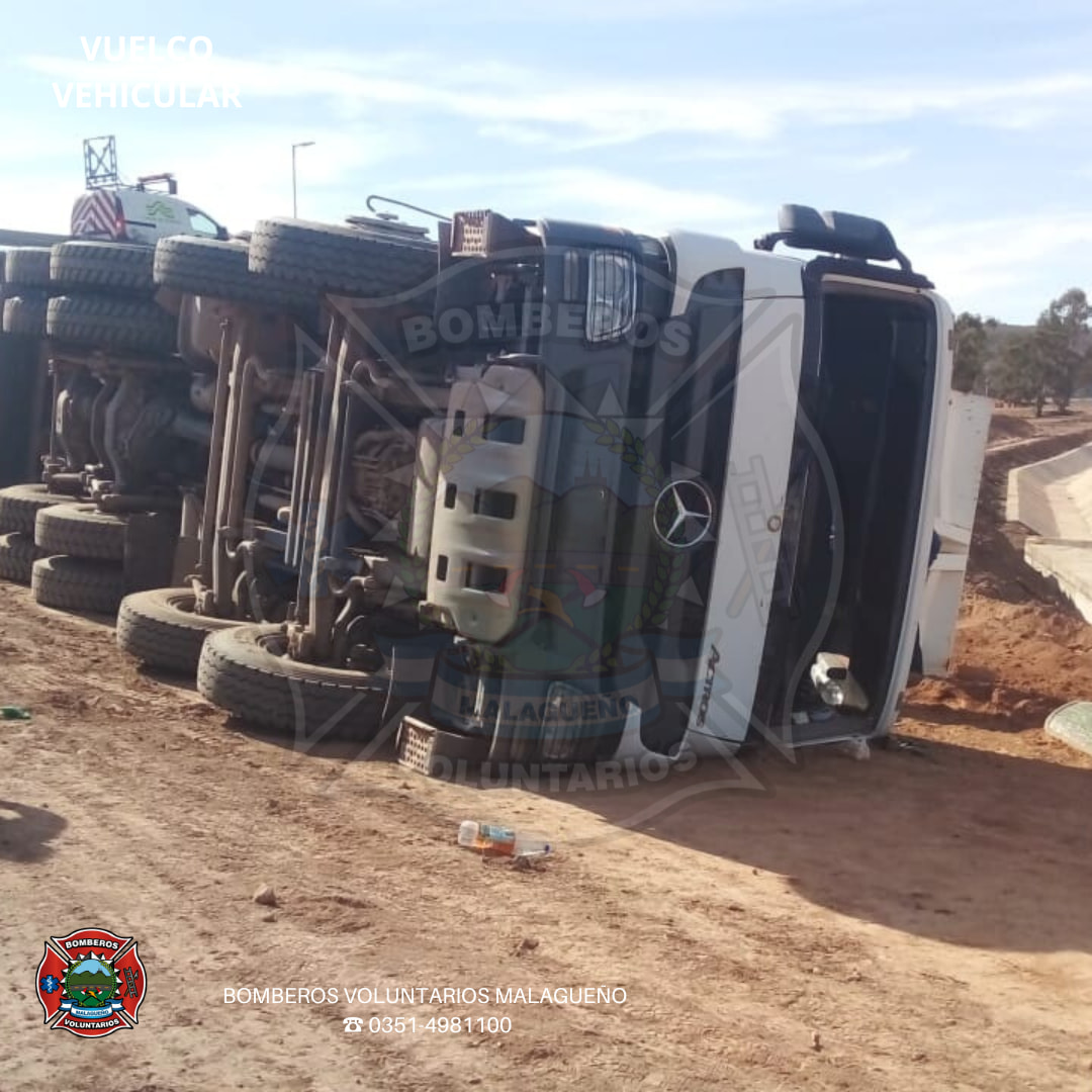 El vehículo transportaba materiales para la construcción y se dio vuelta pasado el mediodía de este miércoles en la ruta C45 y colectora, en Malagueño. El hombre resultó con varios traumatismos.