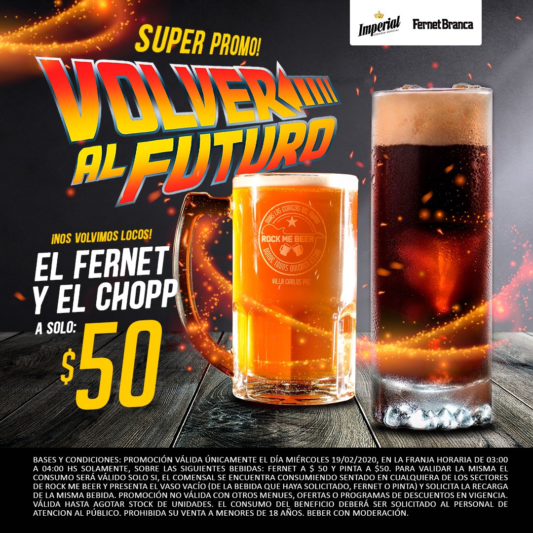 Rock me Beer y otra de sus promociones que darán que hablar. En esta ocasión, la propuesta se llama “Volver al Futuro”, un título que rememora las aventuras del clásico film, protagonizada por el histriónico Doc Brown (Christopher Lloyd) y por el querido Marty McFly (Michael J. Fox).