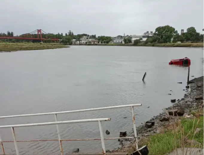 A metros de la terminal, un auto rojo quedó volcado y uno de sus ocupantes tuvo el peor final: Magalí Vera, de 34 años, murió a causa del impacto. Su marido, que manejaba el coche, salió solo del agua y sobrevivió. Él asegura que fue un accidente, pero crecen las dudas sobre un posible asesinato.