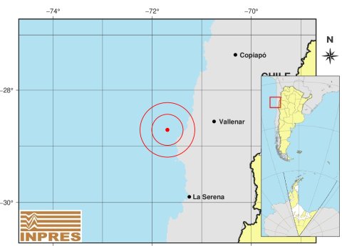 Según los datos del INPRES el sismo tuvo lugar en Chile, en el desierto de Atacama.