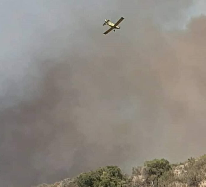 Diego Concha, jefe de Defensa Civil de la Provincia, advirtió que el fuerte viento no ayuda al trabajo de los bomberos que combaten el fuego y de los cuatro aviones hidrantes que colaboran desde el aire.