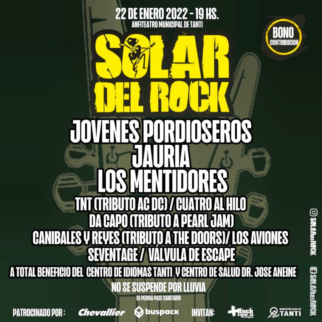 Este 22 de enero, desde las 19 horas, se viene la 19° fecha del Solar del rock en el anfiteatro municipal de Tanti.