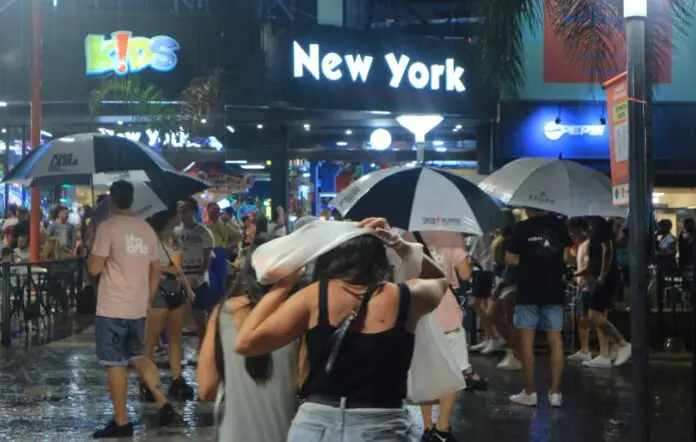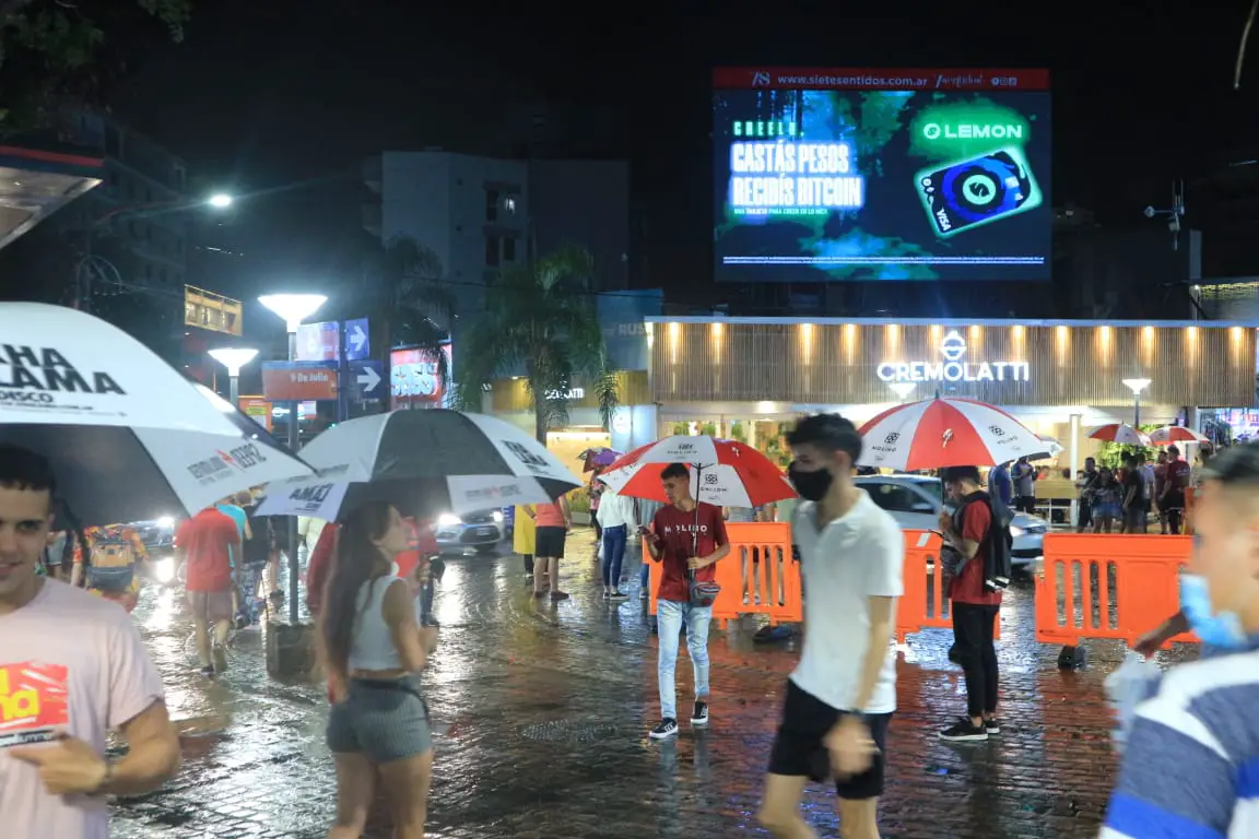 Luego de una semana de intenso calor, pasadas las 22 horas de este domingo,llegó la tan esperada lluvia y sorprendió a todos los turistas que paseaban por la peatonal de Carlos Paz.