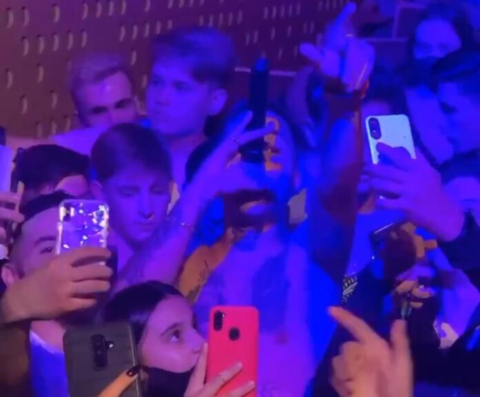 Ahora bien, en una historia publicada en su misma red social de Instagram, el trapero mostró un momento del show en el que se lo ve en un pasillo abajo del escenario, y con el público amontonado para sacarse una foto, sin distanciamiento y muchos sin barbijo también.
