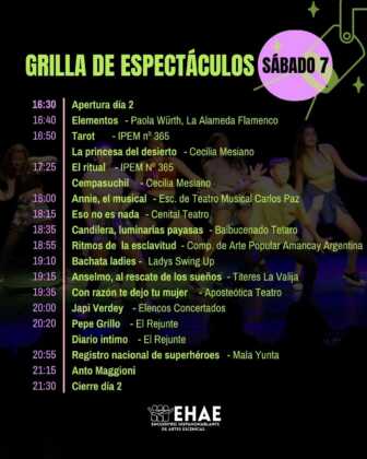Y continuó: “Serán dos días a puro teatro, danza, títeres, narradoras, cantantes, teatro musical., con el trabajo de academias de danza, danza teatro y mucho más. Habrá seminarios y talleres los días 7 y 8 por la mañana, y por la tarde se llevarán a cabo las mesas debate en Club de Teatro, espacio cultural”.