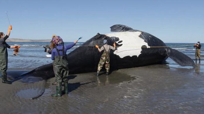 El informe recordó que “la primera ballena muerta fue registrada el sábado 24 estando en cercanías de Punta Pardelas por el equipo de investigadores del proyecto Siguiendo Ballenas”.